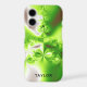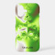 This modern iPhone case features an abstract fractal art in lime green, brown and white gradient. Personalise it with your name in a black font at the bottom.
