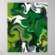 This design features an abstract composition with fluid patterns in shades of green, white, and grey. The swirling shapes create a sense of natural flow and energy, reminiscent of organic forms or a lush forest. The blending of colours highlights depth and balance, offering a tranquil yet dynamic aesthetic.
