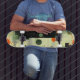 This skateboard features a striking abstract geometric design with a refreshing palette of green and orange against a textured background. Its minimalist aesthetic incorporates clean lines and subtle leaf patterns, creating a contemporary and artistic appeal. Ideal for skaters seeking a bold and creative deck to elevate their ride.