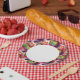 Abstract green, red wallpaper paper plate