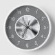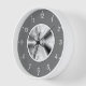This round wall clock features an abstract monochrome ombre fractal art on a grey background with white numerals.