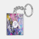 A wonderful messy, grungy mix of paint strokes, splatters and marks in a colourful palette of purple, pink, blue, green, yellow, black and white. Personalise with an initial.