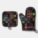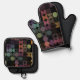 Discover a chic, contemporary oven mitt and pot holder set that boasts a playful and attractive design featuring geometric circles and half circles in dark brown, beige taupe, teal blue, dark pink, rust orange and olive green coloured geometric circles and half circles pattern on a black background. This set embodies an elegant, stylish, and eclectic minimalist design, perfect for the artistic interior designer, the artsy décor enthusiast, the trendy hipster, the lover of vintage retro art, or the aficionado of abstract digital geometric motifs. Its artistic and modern aesthetic exudes colourful sophistication, making it an ideal choice for the fashion-forward trendsetter with a penchant for mixing vintage and contemporary elements in kitchen decor. Essential for any home cook, baker, or culinary expert, this set is the epitome of style meets functionality.