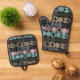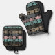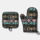 Discover a chic, contemporary oven mitt and pot holder set that boasts a playful and attractive design featuring geometric circles and half circles in dark brown, tan beige taupe, aqua turquoise blue, and pastel blush pink coloured geometric circles and half circles pattern on a black background. This set embodies an elegant, stylish, and eclectic minimalist design, perfect for the artistic interior designer, the artsy décor enthusiast, the trendy hipster, the lover of vintage retro art, or the aficionado of abstract digital geometric motifs. Its artistic and modern aesthetic exudes colourful sophistication, making it an ideal choice for the fashion-forward trendsetter with a penchant for mixing vintage and contemporary elements in kitchen decor. Essential for any home cook, baker, or culinary expert, this set is the epitome of style meets functionality.