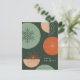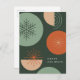 This abstract design features various circular elements in festive colours, including greens, oranges, and light beige, decorated with minimalist snowflakes and star shapes. The simple, modern look makes it versatile for any holiday greeting.