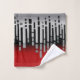 Contemporary painted illustration with vertical stripes in red, light grey and black