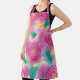 Hot pink circles make a pattern on pretty watercolor pastels of yellow, green, and pink aprons. Abstract, sophisticated, artsy. By CherylsArt on Zazzle.