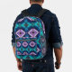 This gemstone-patterned backpack features a mirrored kaleidoscope of jewel-toned shapes in lavender, lilac, turquoise, and deep sapphire blue, woven together in a mesmerising abstract IKAT-inspired print.