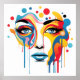 abstract image of a portrait of a woman with multi-coloured paint drips and drops