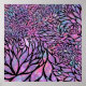 Abstract impressionist leaves is an original digital painting, combining abstract impressionist back ground in teals and pinks with a black lace over lay of leaf shapes. Swirling purples, pinks, and blues paint splotches and striking black lace background in hand drawn tessellating leaf shapes.