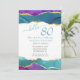 Abstract Ink Fuchsia Pink Teal Gold 80th Birthday Invitation