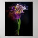 A striking and artistic iris flower captured with a soft abstract motion effect, creating a sense of movement and elegance. The rich purple and golden tones contrast beautifully against the dark background, giving this floral design a dramatic and sophisticated look.
