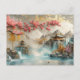 Abstract Japanese Landscape with Sakura Blossom Postcard