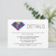 Abstract geometric jewel gemstone modern wedding details card. This trendy wedding design displays a diamond with triangle blocks in navy blue, violet purple, ruby red, turquoise blue and gold with FAUX metallic gold glitter foil outline. Use it as reception, directions or accommodations card, for your website or registry etc.