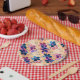Abstract kids cute cartoon flowers floral retro de paper plate
