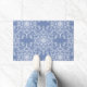 Abstract Lacy Fractal Snowflake Pattern on Blue Doormat