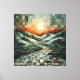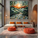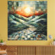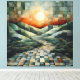 Bring warmth and depth to your space with this abstract landscape art featuring a glowing sun, rolling geometric hills, and a serene path composed of intricate tiles. The vivid orange and green tones create a harmonious balance, evoking a sense of tranquillity and inspiration. This unique fusion of nature and abstract shapes is perfect for modern interiors, adding a vibrant focal point to any room. Ideal for art enthusiasts and nature lovers, this canvas transforms walls into captivating storytelling spaces.