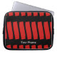This laptop computer sleeve is decorated with an abstract pattern of repeating red shapes on a black background, and personalised with name or other text. It's easy to modify or delete example text. What a wonderful case to protect a new laptop! Great gift for graduation, Mother's Day, Father's Day, Christmas... Available in 10", 13", or 15" sizes. All Rights Reserved © 2014 Alan & Marcia Socolik.