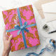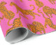Abstract fashionable leopards with red lips and earnings in fuchsia pink background