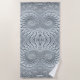 This monochrome beach towel features an abstract spiral fractal design in light grey and black.
