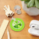 This round keychain features lime green fractal art in a round frame.