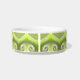 This pet bowl features a beautiful spiral fractal pattern in lime green and white.
