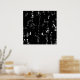 A poster with a modern abstract design made up of randomly placed vector lines over a high contrast black and white digital abstract painting.