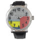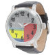 This men's watch has a design of broken black lines running vertically into rectangles of light blue, green, blue, yellow, and red. Want different colours? Message me.