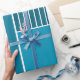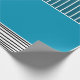 This wrapping paper has a geometric design of a large teal rectangle in the upper left corner, darker teal stripes in the upper right corner, a lighter smaller teal rectangle below the stripes, and black lines across the bottom. If you like the design but prefer different colours, message me.