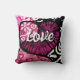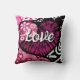 Abstract Love Heart Pink Floral Polka Dots Black Cushion