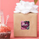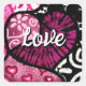 Abstract Love Heart Pink Floral Polka Dots Black Square Sticker