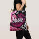 Abstract Love Heart Pink Floral Polka Dots Black Tote Bag