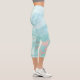Abstract Marble Turquoise Blue Rose Gold Swirls Capri Leggings