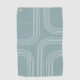 Abstract Mid Century style line art illustration with arches decoration on light blue background.