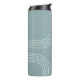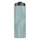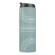 Abstract Mid Century style line art illustration with arches decoration on light blue background.