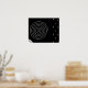 Abstract Minimal White Spiral, Raindrops, Circles Poster printed with a black background. An off centre spiral of triangles with white drops of white on the opposite side. A section of a white circle finishes off this abstract print.