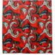 Abstract mix of red gradient stain over sandy grey shower curtain