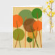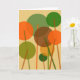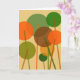 An abstract geometric modern art floral design of round flowers on stems in orange, green and brown colours.