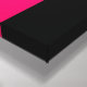 A minimalist modern abstract geometric art design of lines and blocks in bright pink and white colours on a black background.