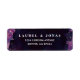 Personalised chic black and purple return address labels with abstract purple watercolor paint strokes, gold dots and simple modern text. Perfect return address labels for modern art museum and art gallery wedding invitations and save the date cards.