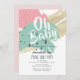 This stylish and modern "Oh Baby" baby shower invitation features a white background with brush strokes in pink, mint green, and faux gold foil . The reverse side features a blush pink background. Personalise it for your needs. You can find matching products at my store.