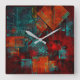 Abstract Modern Colourful Cool Artistic Pattern. Red Orange Blue Squares Abstract Art Square Wall Clock.