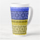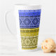 Abstract modern decor ornamental geometrical patchwork blue yellow lined pattern