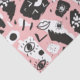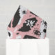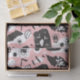 This design features an abstract pattern constructed of hand drawn eyes and lips on a pink background.