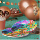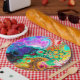 Purple, blue, red, yellow, teal, orange colourful digital pour painting fluid art.