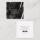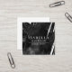 A modern abstract black makeup artist business card featuring sumi style brush strokes. Script and sleek sans serif signature. Chic modern bold style. Social media icons on the back. Use or delete as preferred.