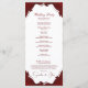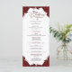 This wedding program card features a modern minimalist design in bold red, creating a refined and elegant impression. The front page neatly displays the wedding details in a clear and stylish format, while the back highlights the couple’s names in a simple framed layout that can be personalised. The rich red tones enhance the minimalist style, making this program card perfect for elegant, formal, and contemporary weddings.