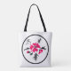 Abstract modern pink flower grey leaves print whit tote bag