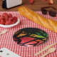 Abstract modern polygonal graffiti geometric dark green red yellow black