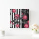 Abstract modern red roses leaves sketched flowers floral black white feminine